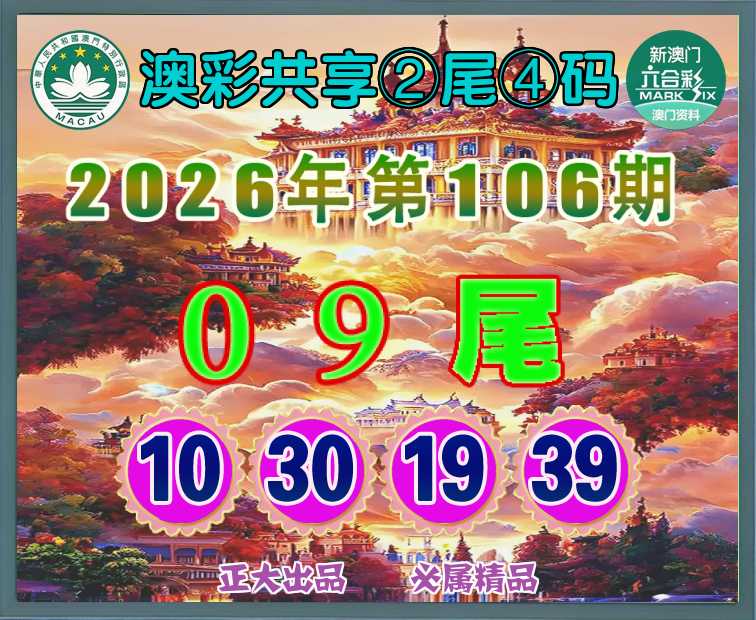 106期: 🧩『澳彩共享』 🧩②尾④码🧩【09尾主:10.30.19.39】开:00准
