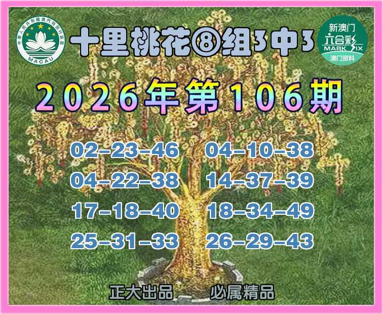 主题: 106期:正大澳彩【⑧组3中3】🀄【十里桃花】〓 实战高手